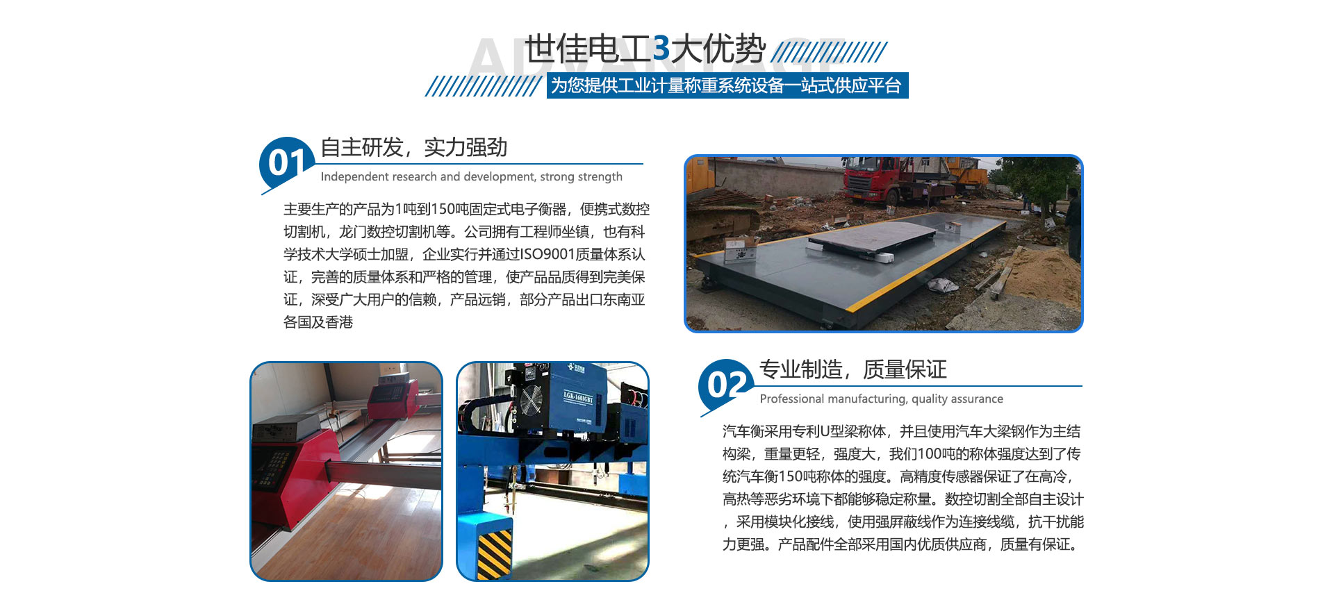 關于我們合肥世佳電工設備有限公司是生產、銷售工業自動化設備。主要生產的產品為1噸到150噸固定式電子衡器,便攜式數控切割機,龍門數控切割機等。公司擁有工程師坐鎮,也有中國科學技術大學碩士加盟,完善的質量體系和嚴格的管理,使產品品質得到保證,深受廣大用戶的信賴,產品各地可售,部分產品出口東南亞各國及香港,數控切割設備也在安徽處于前列。我們并不滿足現在所取得的成就,公司繼續加大科研投入,正在和中科大物理研究所科研人員共同研究開發下一代衡器控制儀表,希望以技術作為突破口,將公司做大做強,為中華崛起盡自己一份綿薄之力。歡迎廣大客戶來廠參觀訂貨考察。